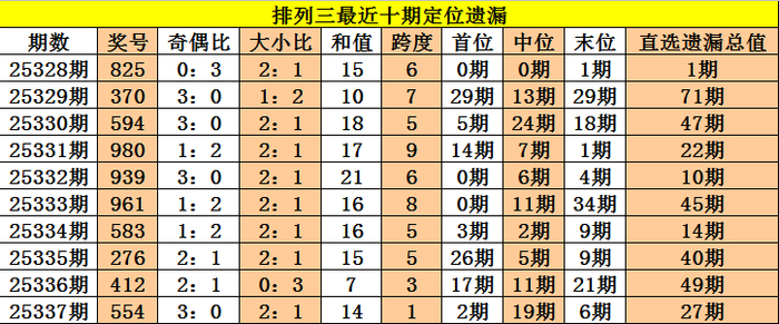开奖总结:成列三第2025337期奖号:554,定位直选遗漏值2期、19期、6期,遗漏总值为27期。